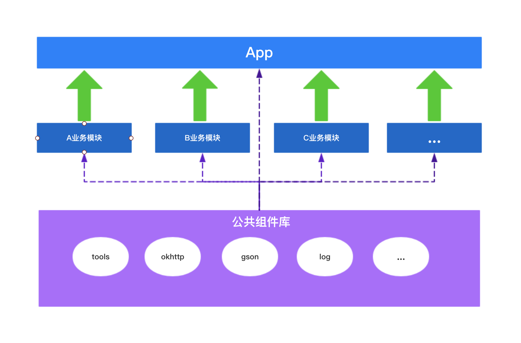 前面我们已经了解到了,传统的app架构所拥有的痛点,为了解决这个痛点我们引入了组件化架构设计,如何来设计组件化结构呢?其实关于这一点Android已经为我们做好了铺设,那就是利用Android library和gradle,我们可以在创建的Android工程下再创建一个或多个library,这是众所周知的事了,所以如上图所示,我们需要设计好app的业务模块,为每一个业务模块创建一个library工程,形成如上图所示的结构,当然一个app一般会依赖一些第三方库,我们就可以使用gradle来管理这些依赖。向上面我们介绍的ARouter也是属于第三方库,像这样一类库是各个模块都可能需要的,那么我们就可以把这些库组成一个公共组件库来使用,以方便统一管理,这样我们就将业务和公共组件分开了,有了这样的结构后我们就可以分模块开发了,但是这里还有如下问题需要解决。